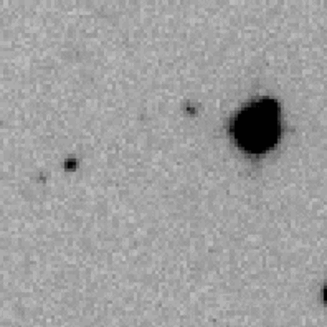 The three images above show the asteroid's movement among the background stars. 1997 XF11 is the small black dot that moves from left to right during time (about 1/2 hour between frames).