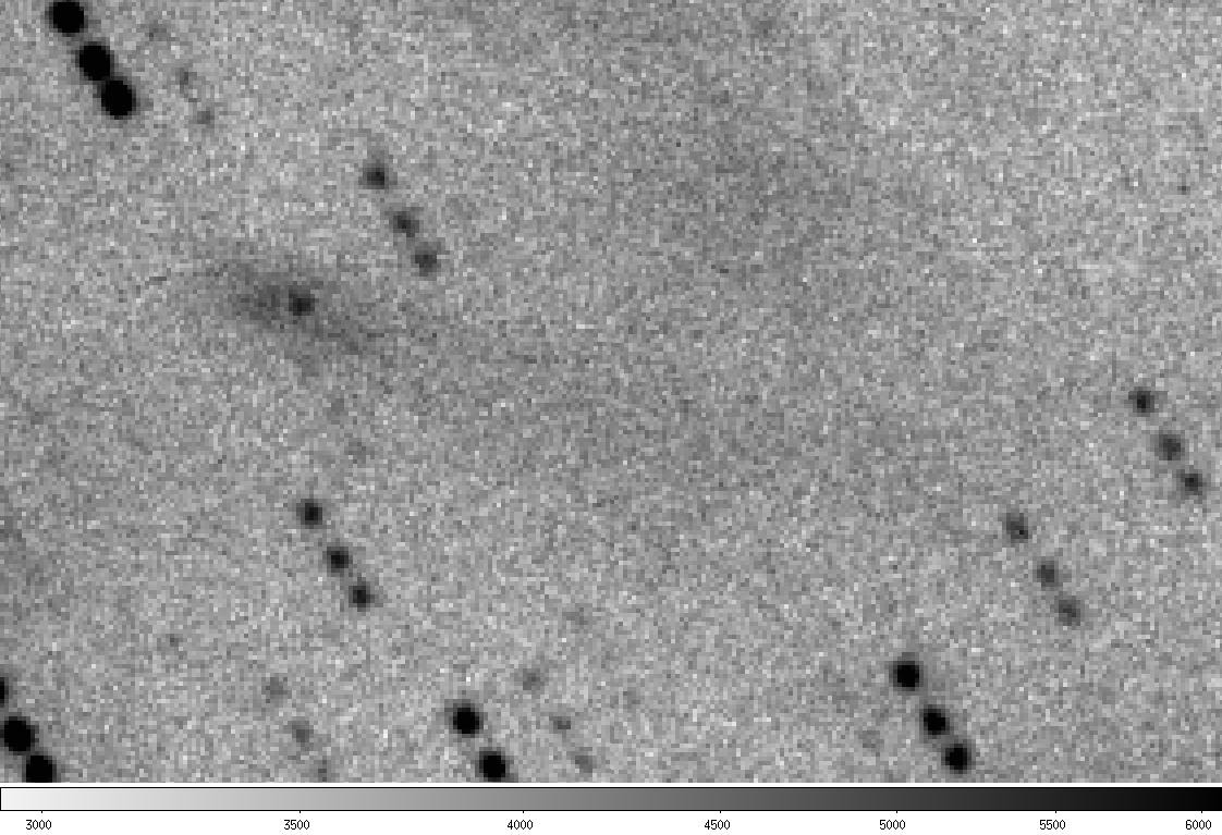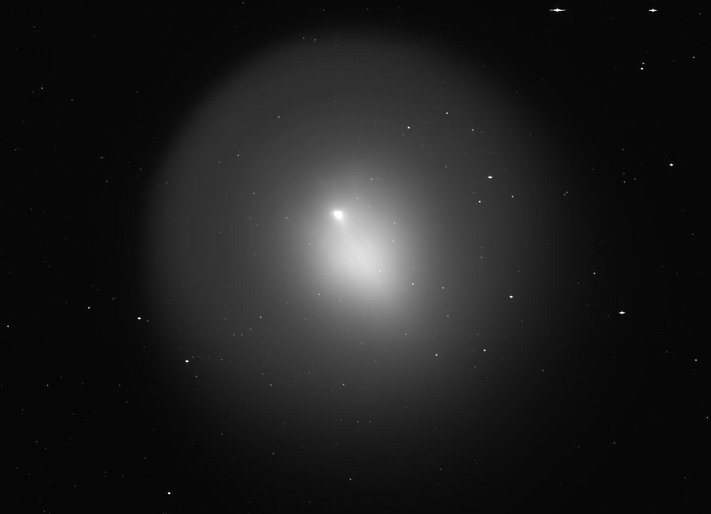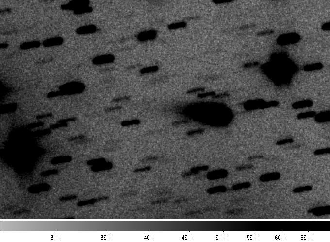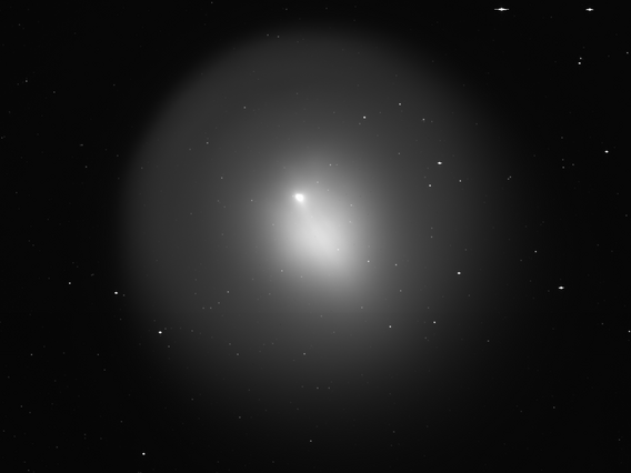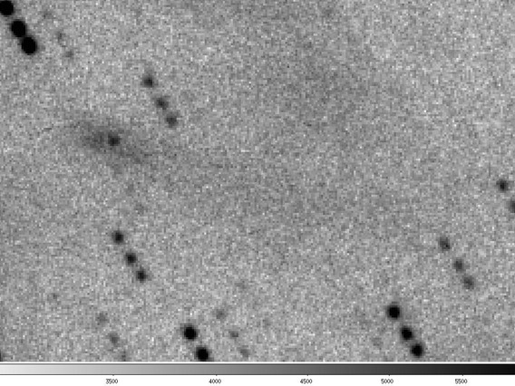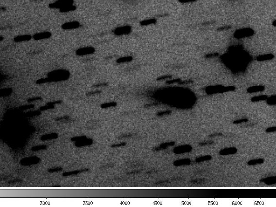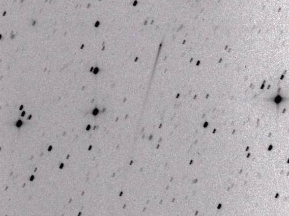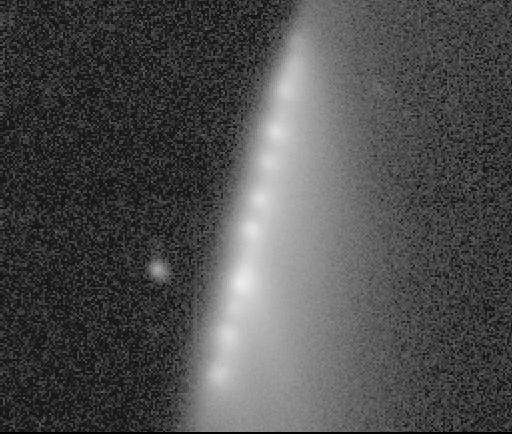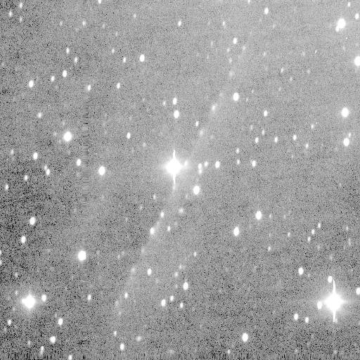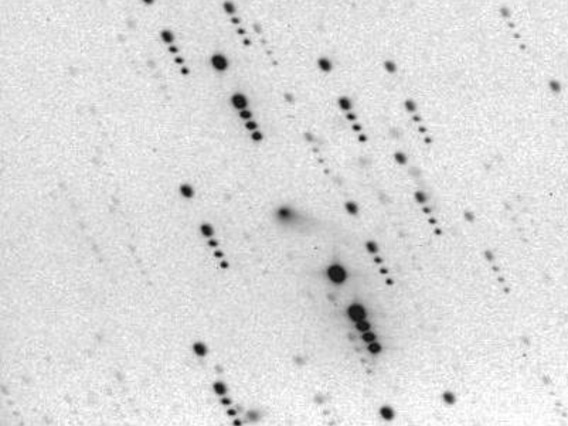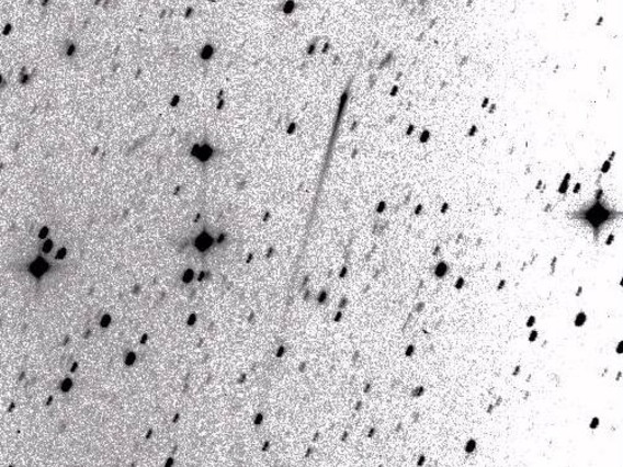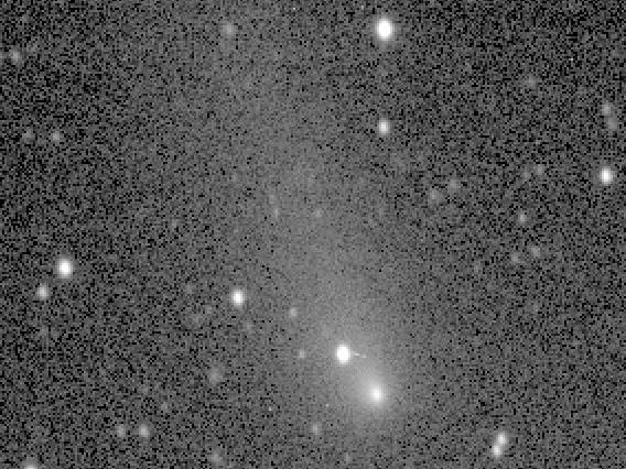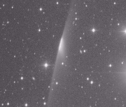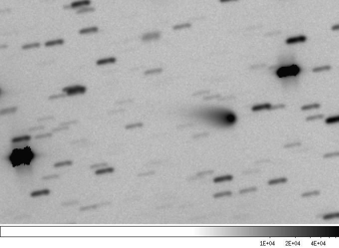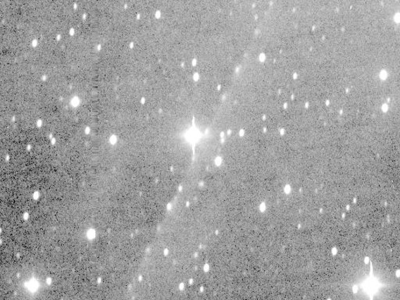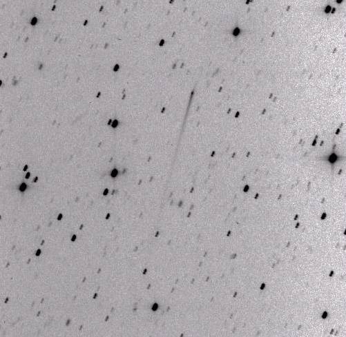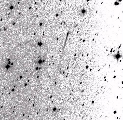 P/1996 N2 (Elst-Pizarro) - The same co-added image, showing the extent of the tails in more detail with a more extreme contrast stretch. Observer credit: Jim Scotti.