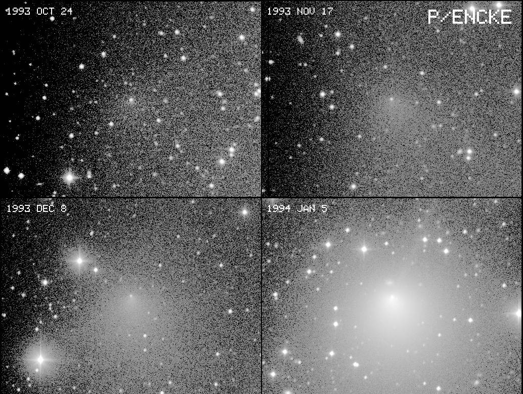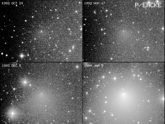 P/Encke - Comet Encke. A mosaic of images from 4 consecutive lunations during the comet's 1994 apparition.