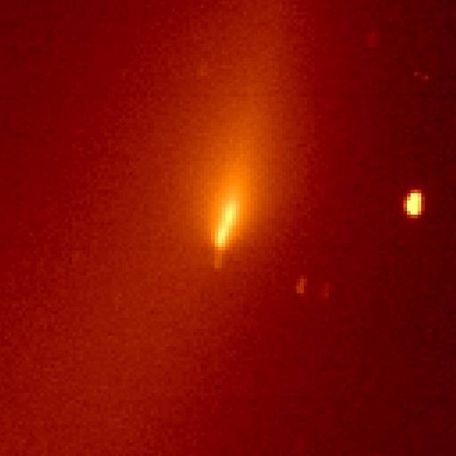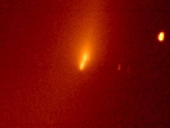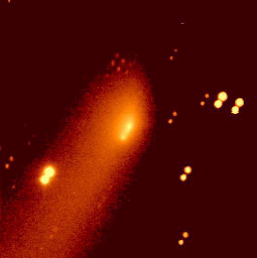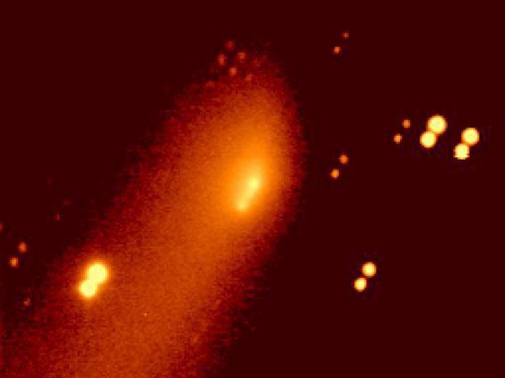 29P/Schwassmann -Wachmann 1 - The comet is in outburst with a jet-like feature extending to the North (the right) in this image (1995 November 14). Observer credit: Jim Scotti.