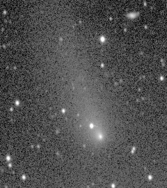 71P/Clark - The comet is the diffuse object of total magnitude 19.0 on the lower right above a star and a faint galaxy, with a faint tail extending to the upper left (towards the two brighter galaxies). (1995 December 31)