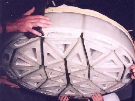 Back side of the new Wangsness 37 inch mirror blank which was designed to fit an 18 point support system. (Photograph by Joe Montani)